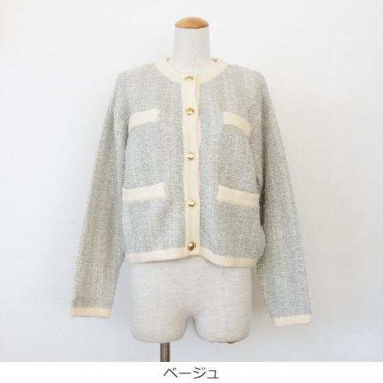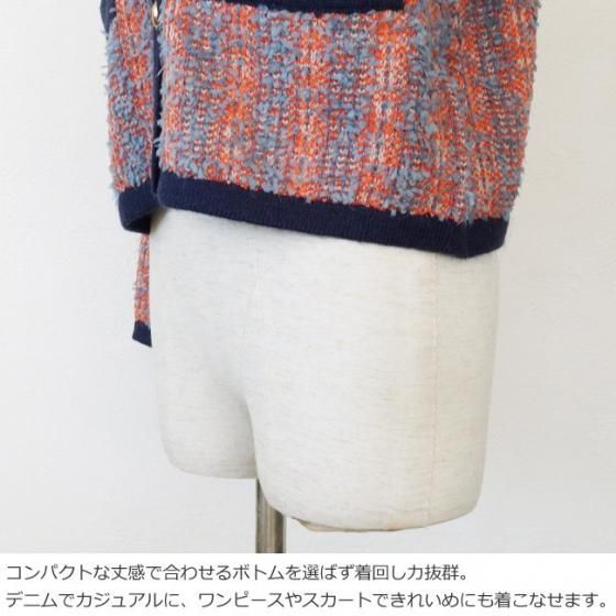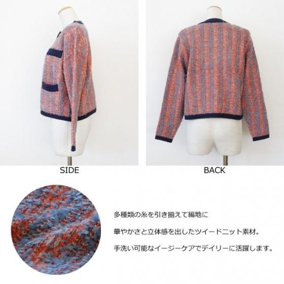 華やかさと立体感のあるツイード素材を使用したカーディガン。