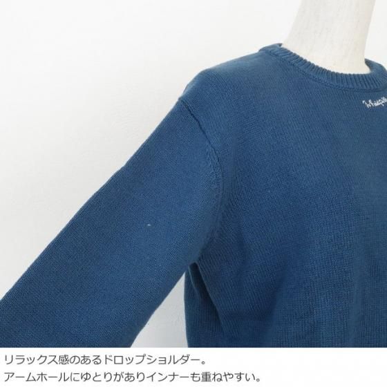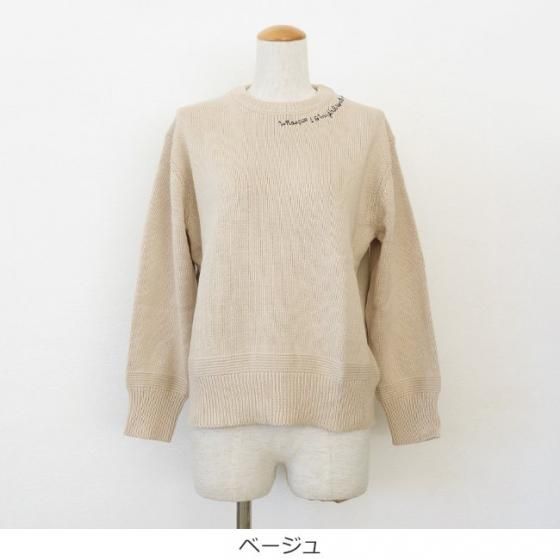 SALE [30%OFF] mao made (マオメイド) ニット ステッチ 刺繍 クルーネック ドロップショルダー 長袖 451113 返品不可