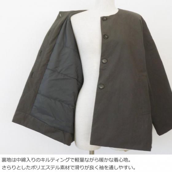 SALE [30%OFF] mao made (マオメイド) ジャケット ノーカラー Aライン 中綿 ドロップショルダー 451304 返品不可