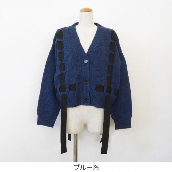 SALE [30%OFF] Dignite collier (ディニテコリエ) ニット カーディガン ショート リボン Vネック LC-80243644 返品不可