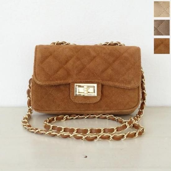 しっとりと柔らかく優しげな印象のスエード素材を使用したショルダーバッグ。