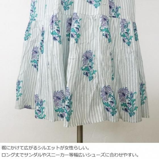 裾にかけて美しく広がるティアードデザインで女性らしく着こなせるアイテムです。