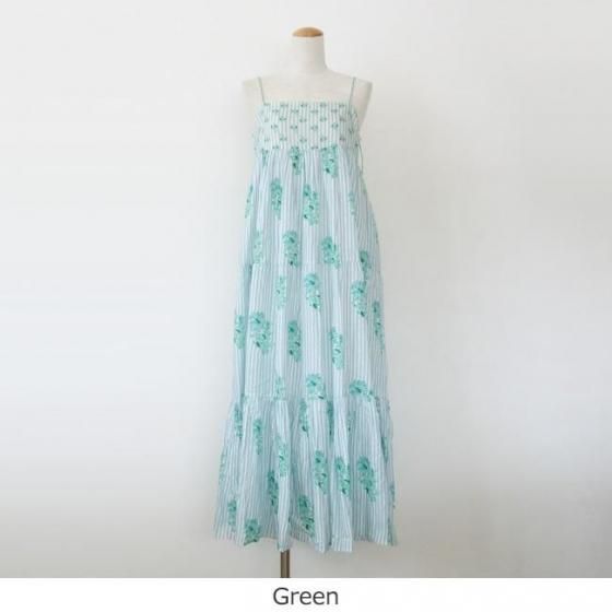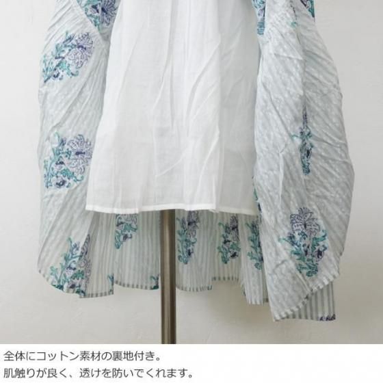 地模様の透けるコットンジャカード素材を使用したワンピース。