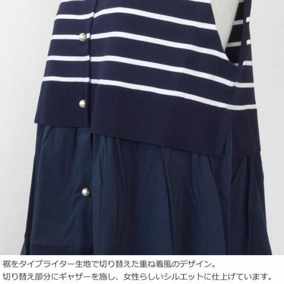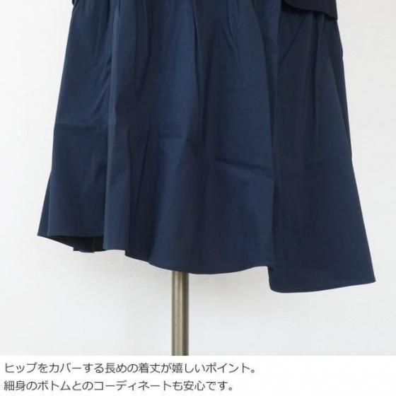 切り替え下からふんわりと広がるシルエットが女性らしく、気になる体型もカバー。