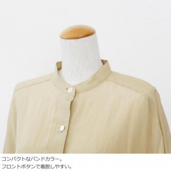 軽やかで上品な光沢とドレープ感のある生地を使用したブラウス。