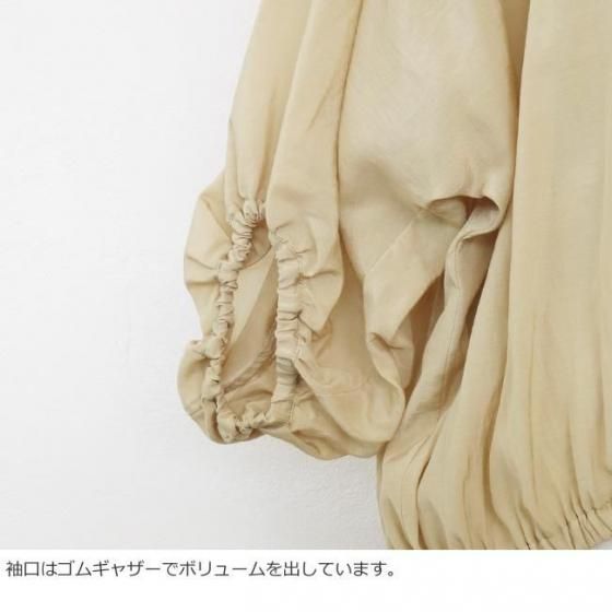 袖口と裾にゴムギャザーを施し、女性らしいシルエットに仕上げています。