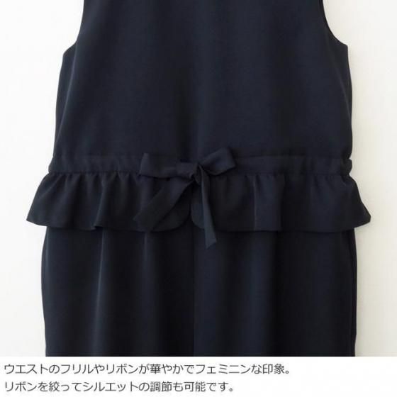ウエストのフリルやリボンでカジュアルすぎずフェミニンに仕上げています。