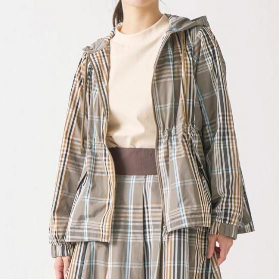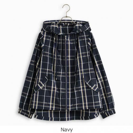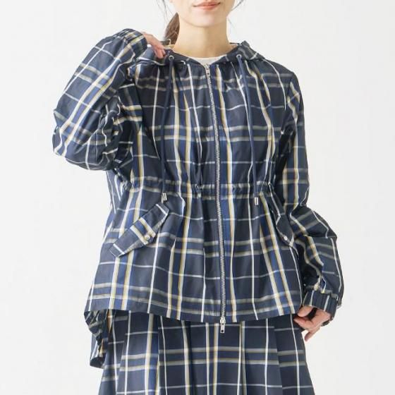 ハリがありつつ軽い素材感のチェック柄の生地を使用したジャケット。