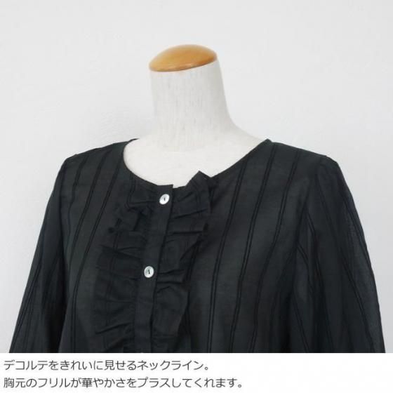 軽やかに広がるシルエットや胸元のフリルが女性らしさを引き立てます。