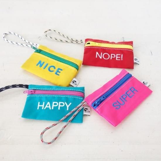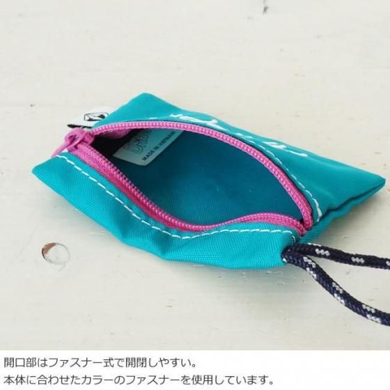 こちらはバッグのハンドル等への取り付けが可能な長めのロープが付いたチャーム型のポーチ。