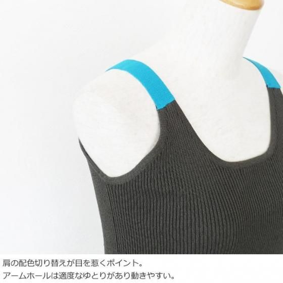 キャミワンピースを重ねたり、襟の開いたトップスから肩の配色を覗かせるのも◎