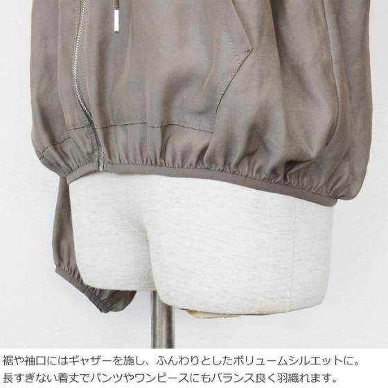 袖口と裾にギャザーを施し、ふんわりとした女性らしいシルエットに。