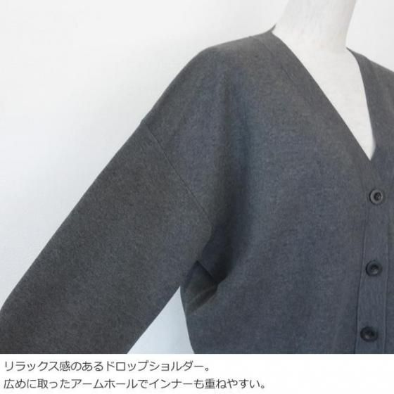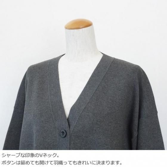 厚手すぎないレーヨン混の素材で季節の変わり目の羽織りに便利なアイテムです。