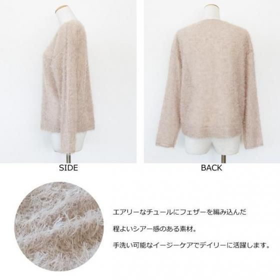 エアリーなチュールにふわっとフェザーを編み込んだ華やかなカーディガン。
