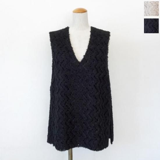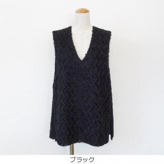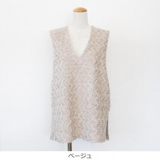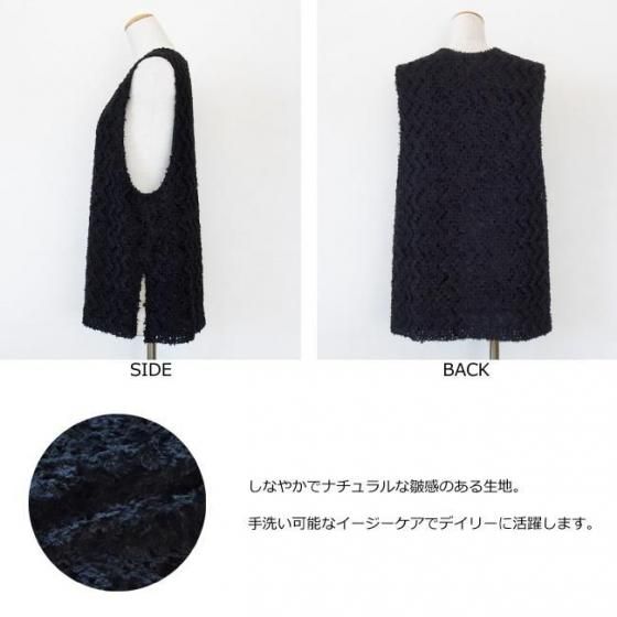 上品な光沢と起毛感のあるテープヤーンを使用したジレ。