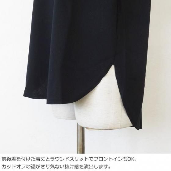 前後差のある着丈とラウンドスリットで幅広いボトムに合わせやすいアイテムです。