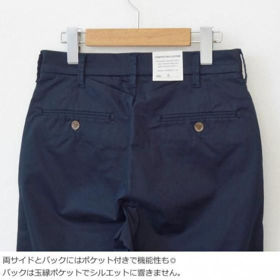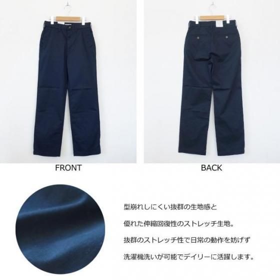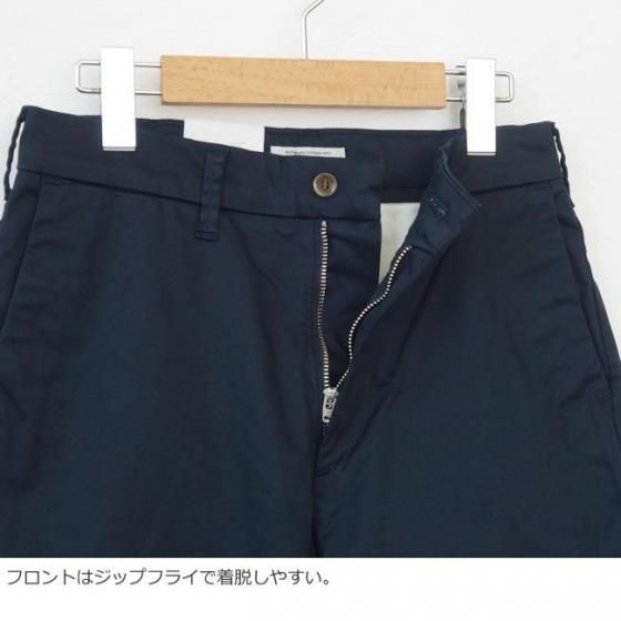 柔らかく伸びて型崩れしにくいストレッチ生地を使用したトラウザーパンツ。