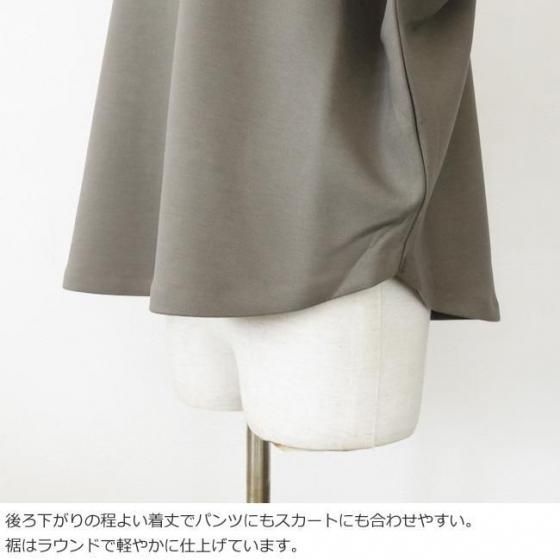 後ろ下がりの程よい丈感で合わせるボトムを選ばずパンツにもスカートにも◎