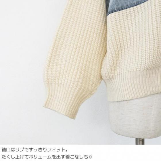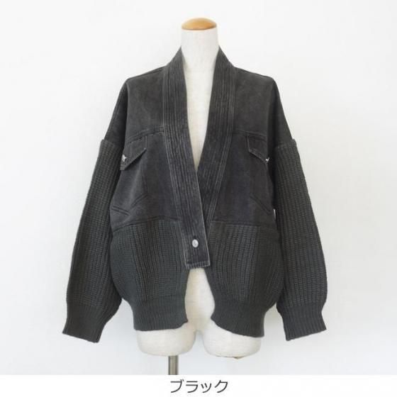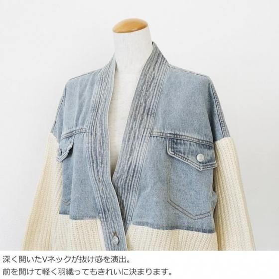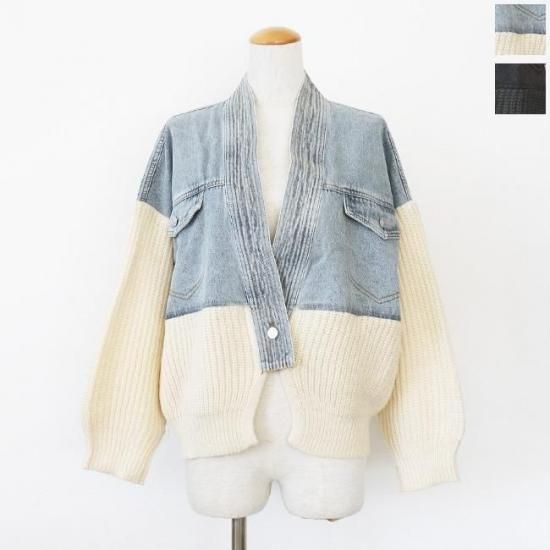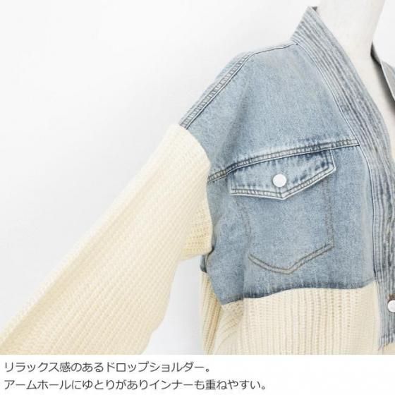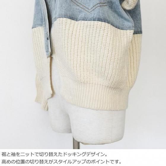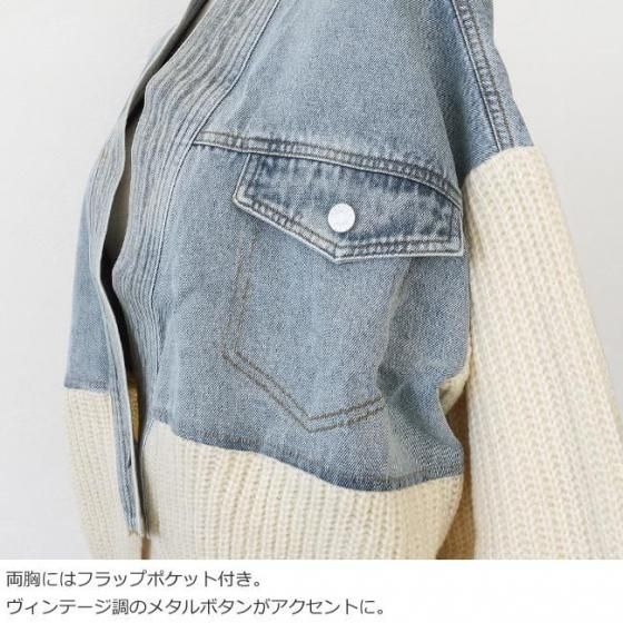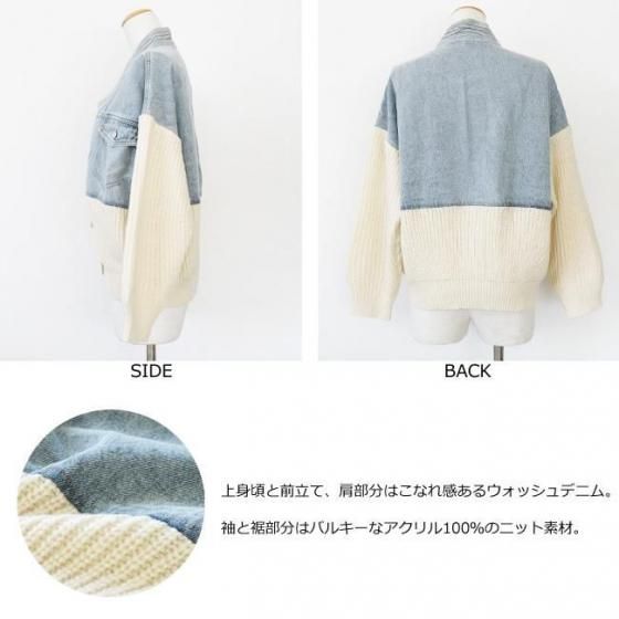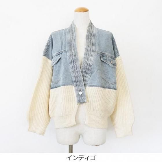 デニムとニットをドッキングしたキャッチ―なデザインのブルゾンカーディガン。