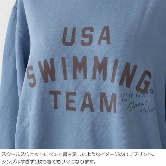 スクールスウェットにペンで書き足したようなイメージのロゴプリントがポイント。