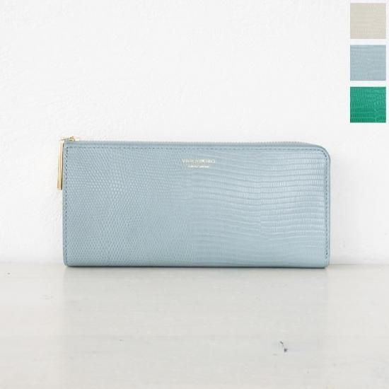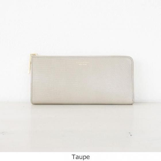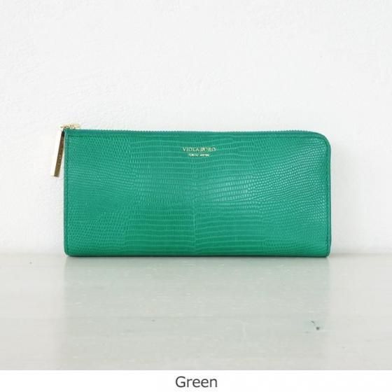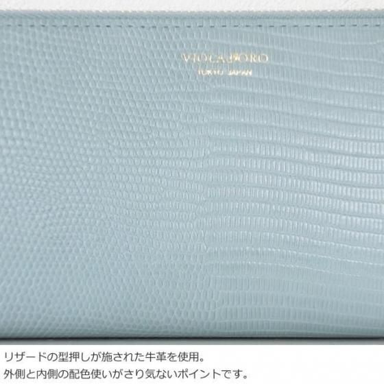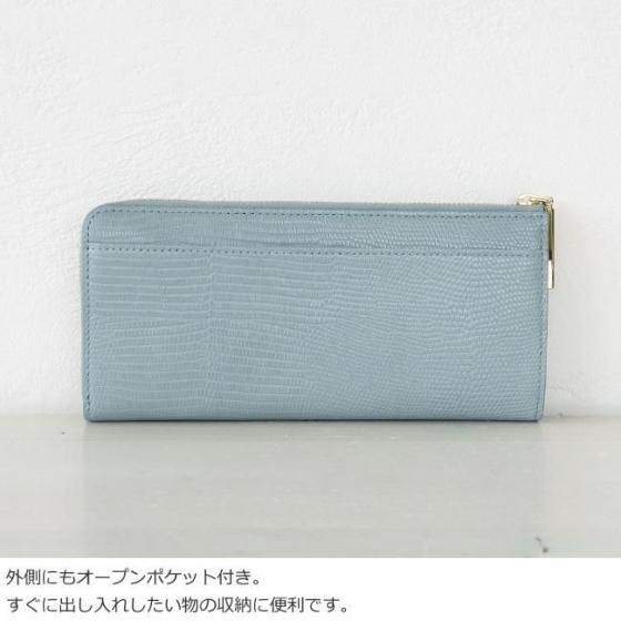 リザードの型押しが施された牛革を使用した長財布。