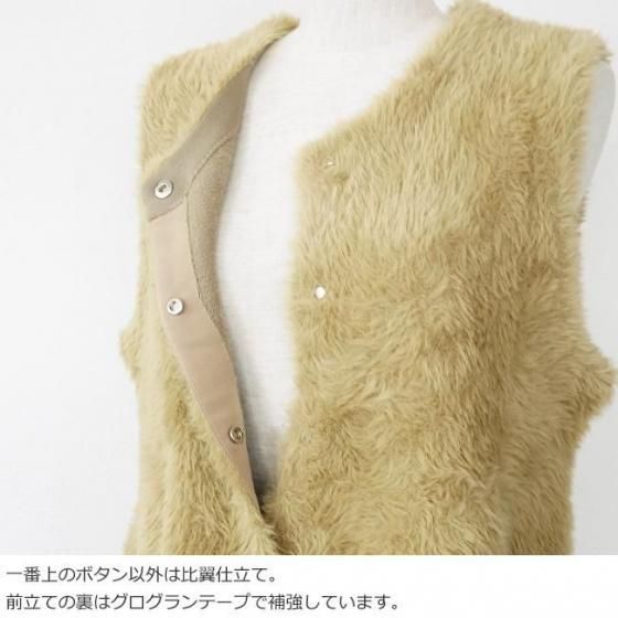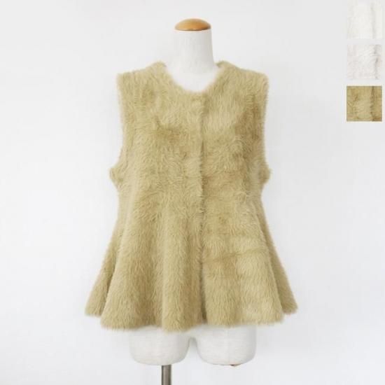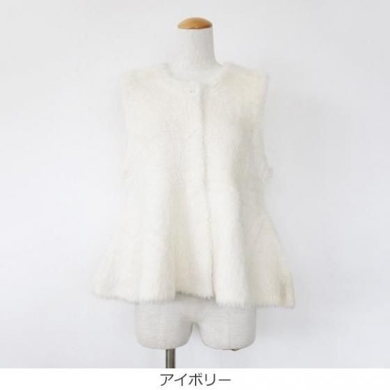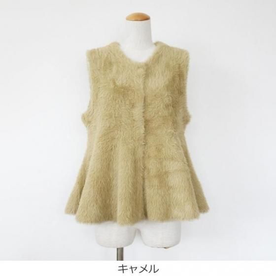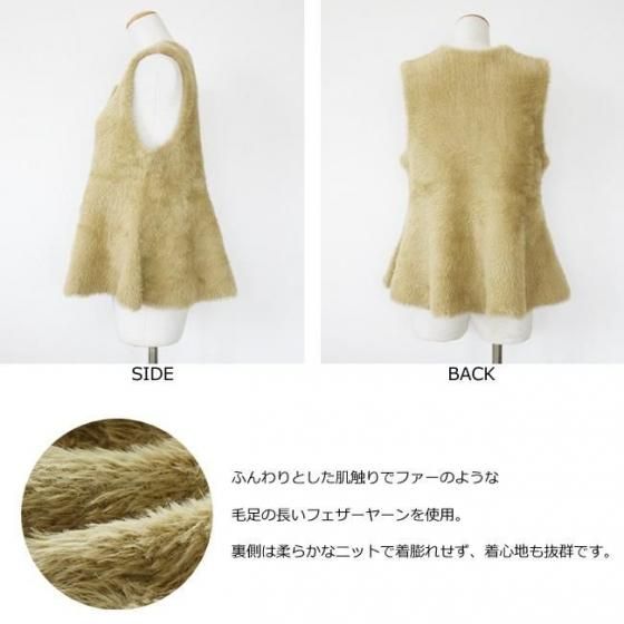 ふんわりとした肌触りの毛足の長いフェザーヤーンを使用したジレ。