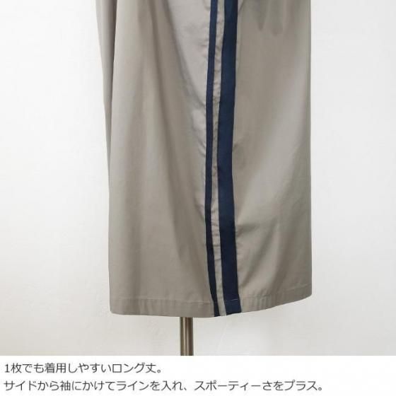両サイドのラインや袖口のリブ切り替えでスポーティーな雰囲気に仕上げています。
