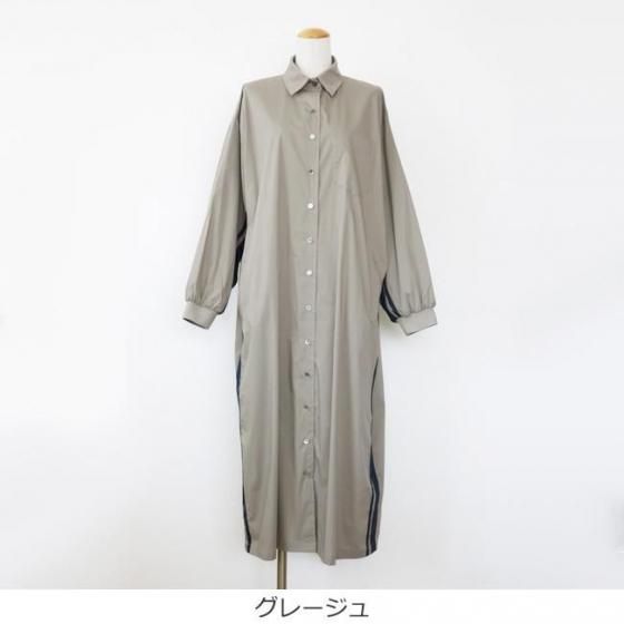 仄かな光沢と適度なハリのあるブロード生地を使用したシャツワンピース。