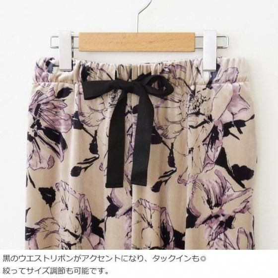 ウエストは総ゴム仕様で穿き心地が良く、黒のリボンが大人可愛いアクセントに。