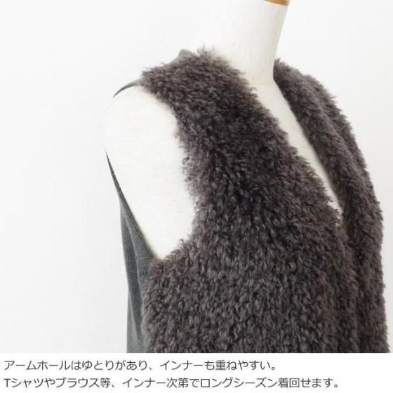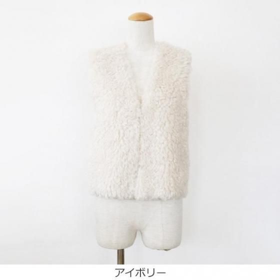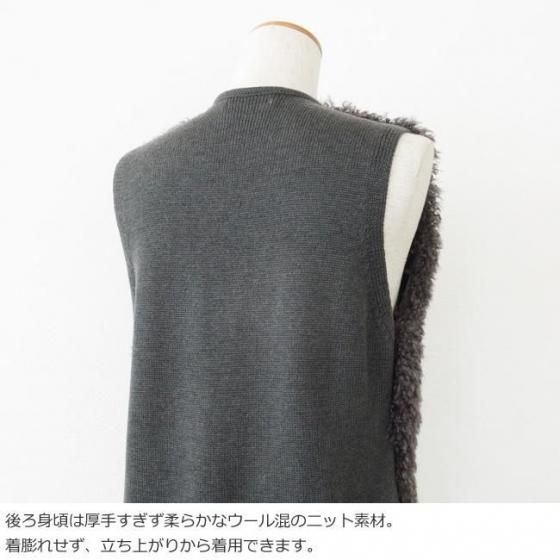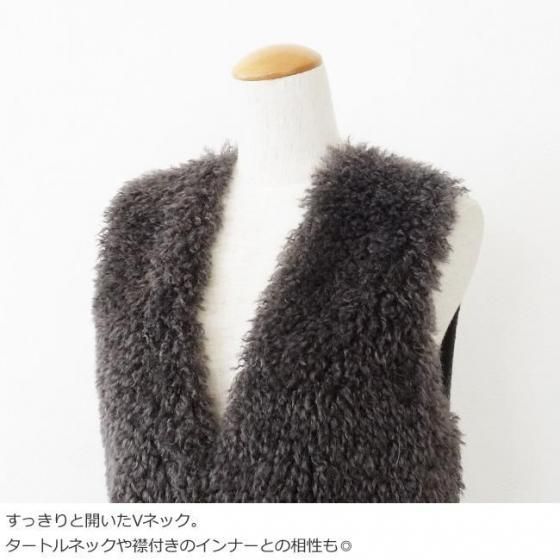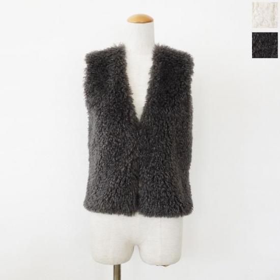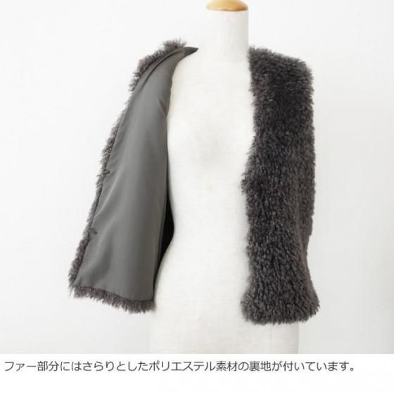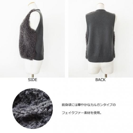 前身頃にカルガンタイプのフェイクファーを使用したベスト。