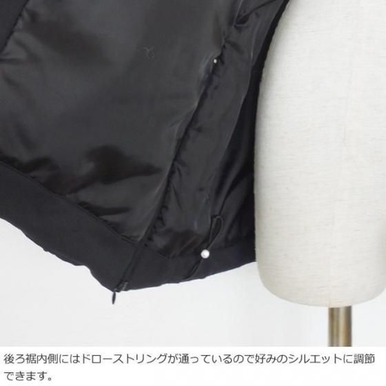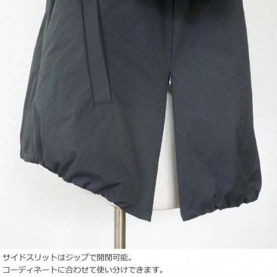 開閉可能なサイドスリットや後ろ裾のドローストリングでアレンジを楽しめるのも◎