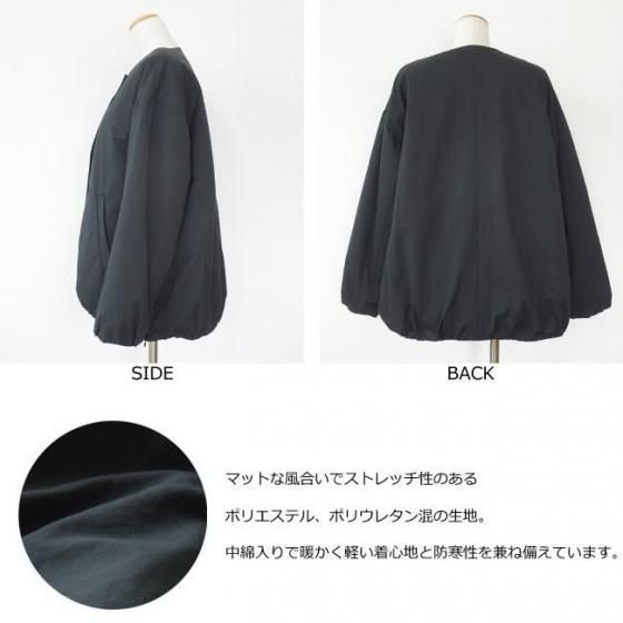 マットな風合いのストレッチ素材を使用した中綿入りのブルゾン。