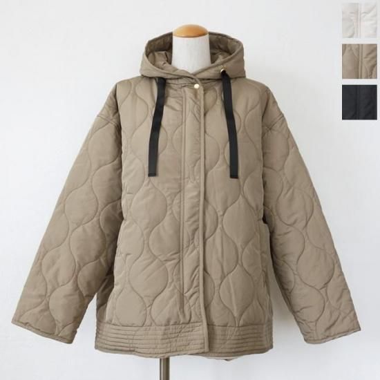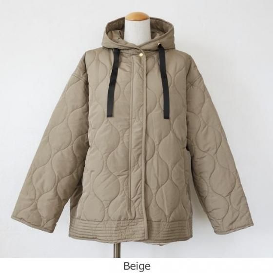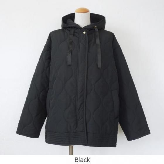 上品な光沢のあるポリエステル素材を使用したキルティングコート。
