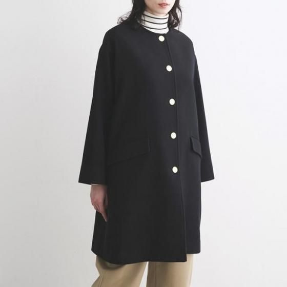 柔らかい雰囲気ながらすっきりとしたAラインシルエットが魅力の「LINTON NO COLLAR」。