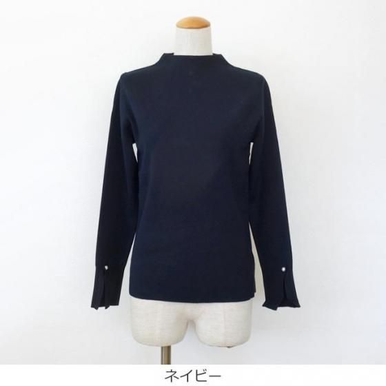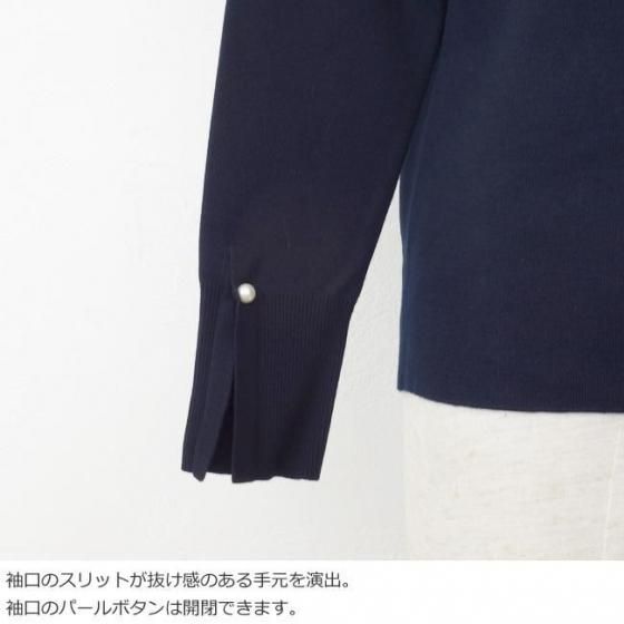袖口と後ろ衿にあしらったパールがさり気ない華やかさをプラス。