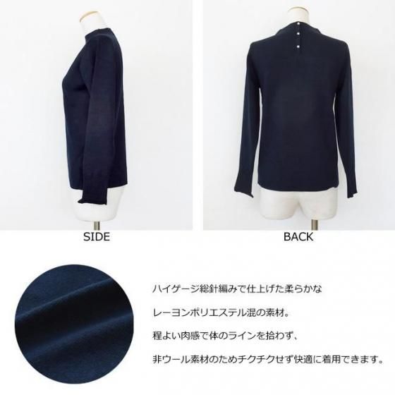端境期に人気のレーヨンポリエステル糸を使用したハイゲージ総針編みのニット。