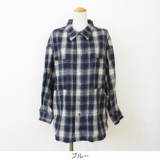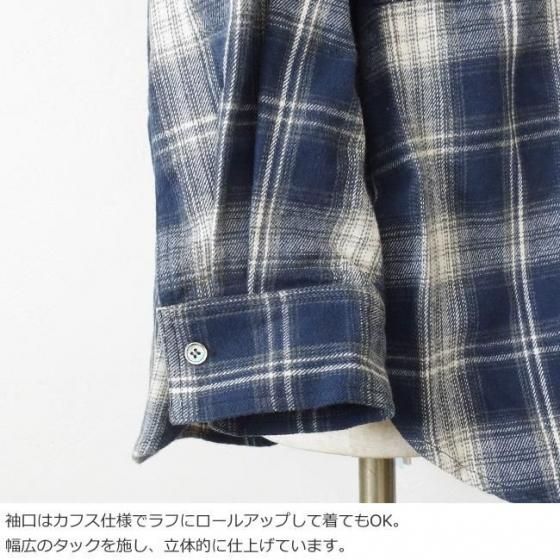 ややしっかりとした肉感のフランネル素材を使用したチェック柄のシャツ。