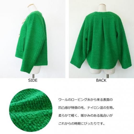 表面の凹凸感が特徴のウール混の生地を使用したショートコート。