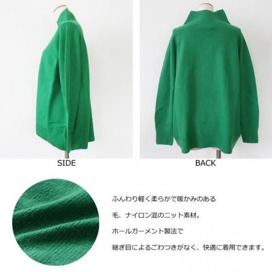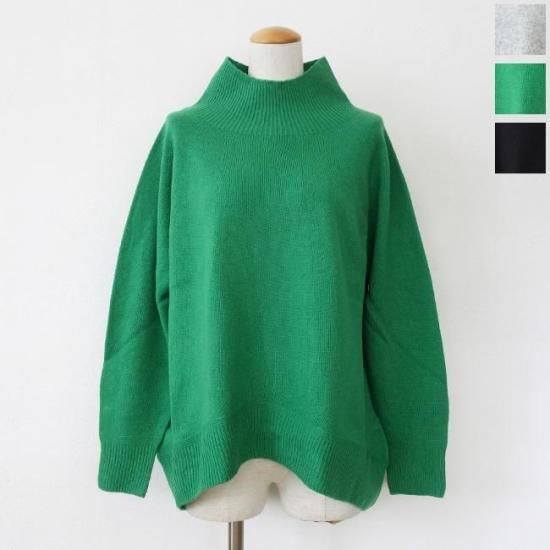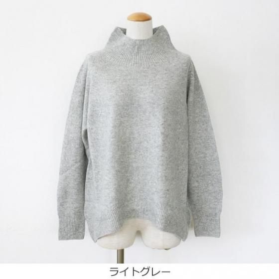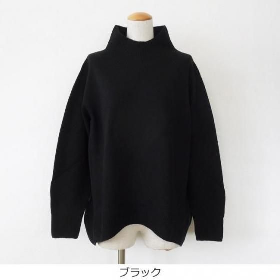 首にぴったり沿わないゆとりのあるハイネックがさり気ない抜け感を演出。