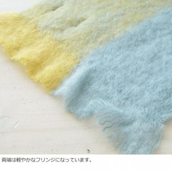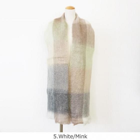 こちらはふんわりとした素材感が見た目にも暖かなモヘヤウール混のマフラー。