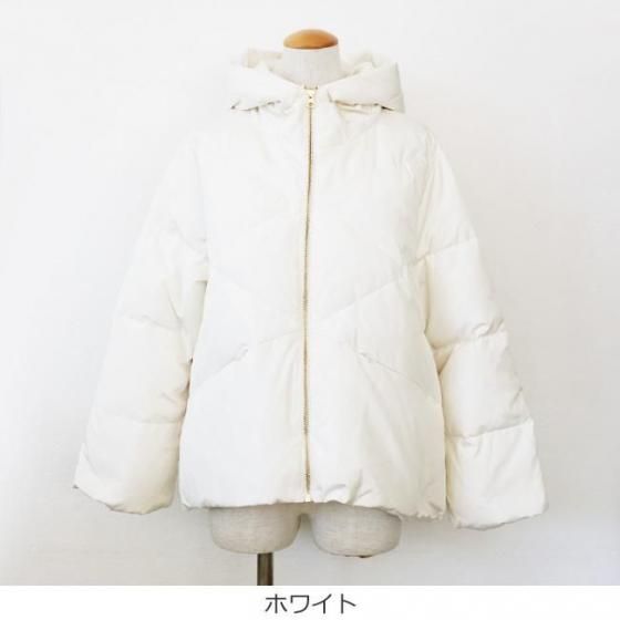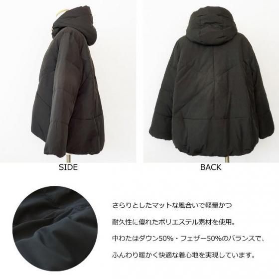 程よいボリューム感のあるフードが顔周りに沿って小顔効果も◎