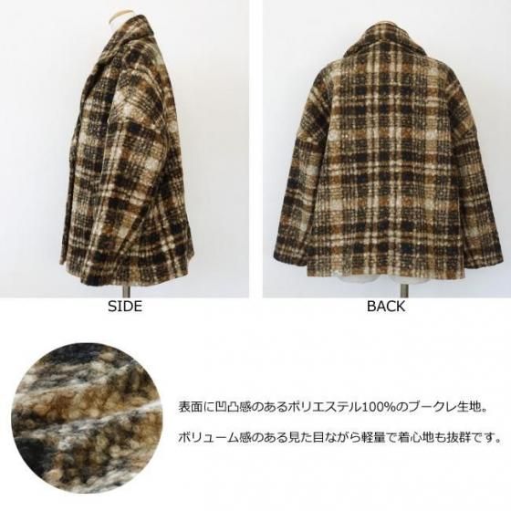 表面に凹凸感のあるブークレ生地を使用したショートコート。