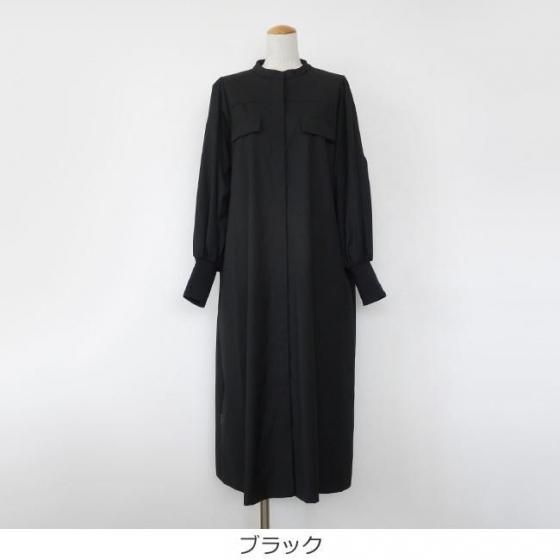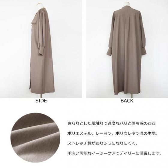 適度なハリと落ち感のあるストレッチ素材を使用したシャツワンピース。