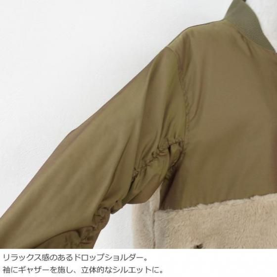 マットな光沢のある布帛ともこもこのボアを組み合わせた異素材使いのブルゾン。