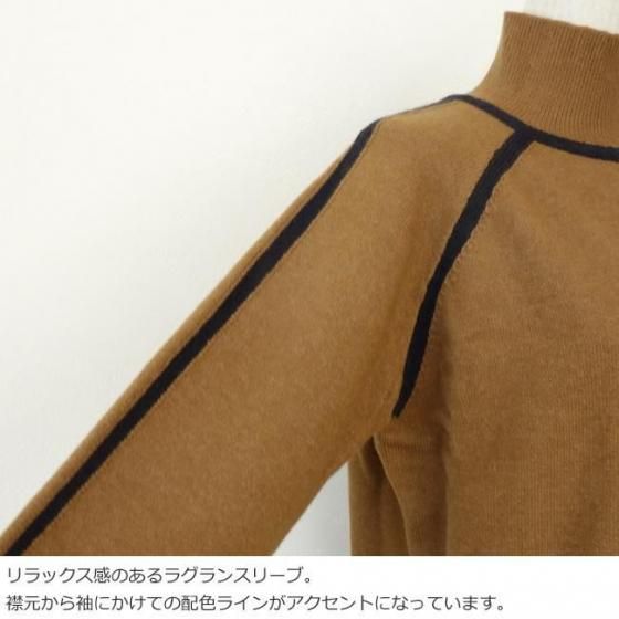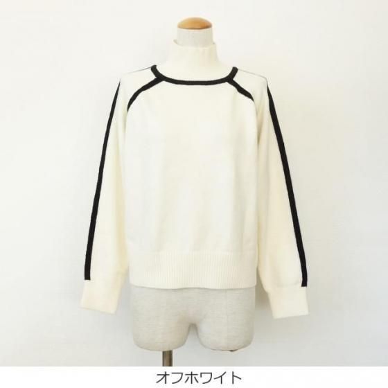 襟元や袖に入った配色のラインがコーディネートのアクセントに。