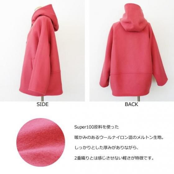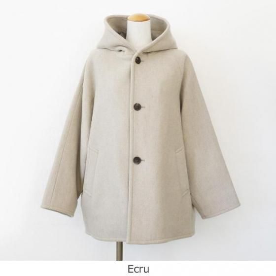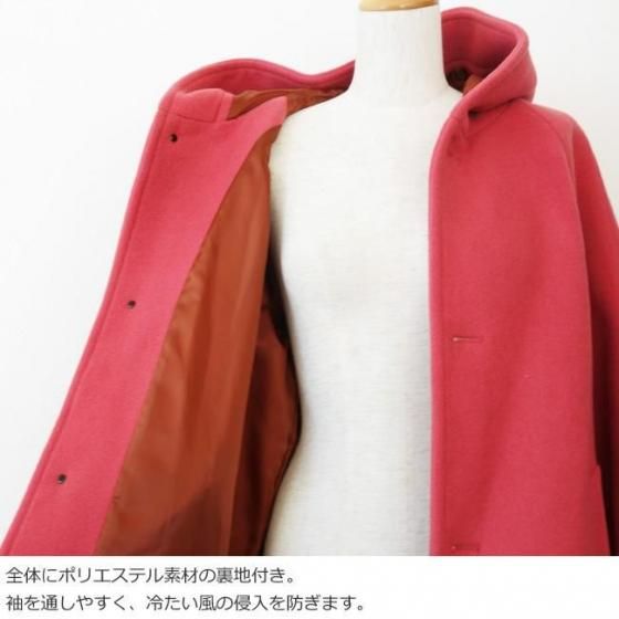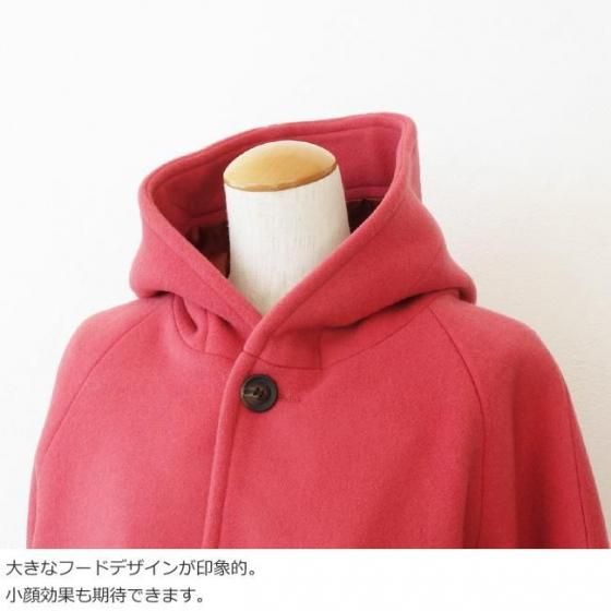 大きなフードデザインがポイントで、小顔効果も期待できます。