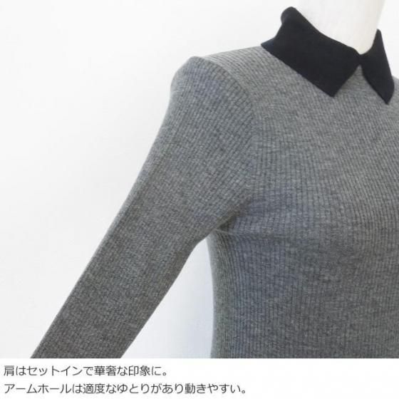 バイカラーの襟と長めのカフスがアクセントになり、1枚で着てもサマになります。