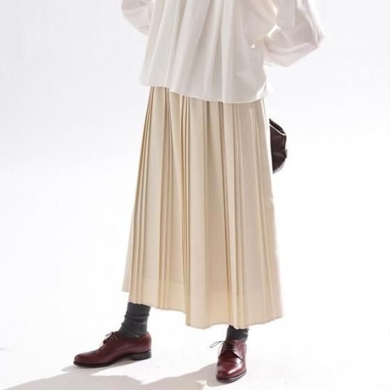 動きに合わせて生まれる陰影と立体感が特徴で、歩く度に揺れる裾が女性らしい印象に。