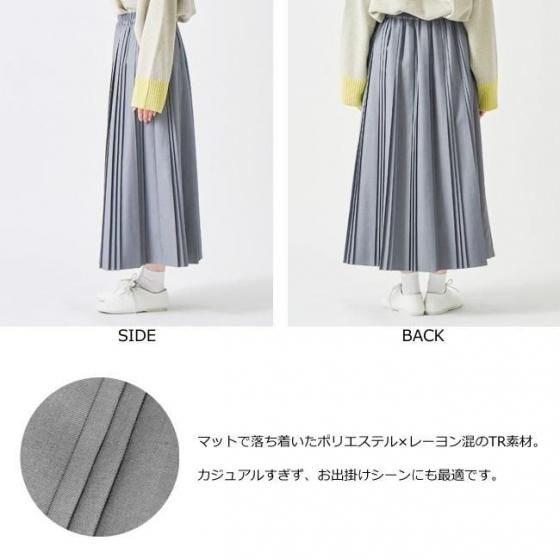 マットな風合いのポリエステル、レーヨン混のTR素材を使用したスカート。
