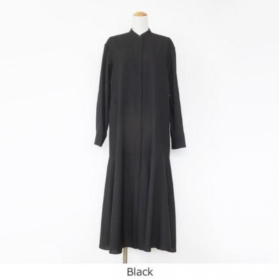 ドライタッチなポリエステルウール素材を使用したシャツワンピース。